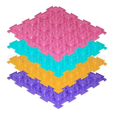 Коврик Орто Микс состоит из восьми разных модулей, которые отличаются не только цветом, но и рельефом. Подойдет для комплексного развития и массажа стоп ребенка.