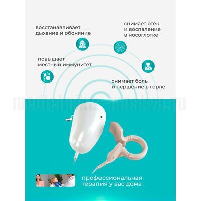 Физиотерапевтическое устройство, применяемое для лечения методом теплового воздействия. С помощью специальных вставок прогревает нос и горло. Удобный прибор способен вылечить простудные заболевания, в том числе и гайморит. Также он подходит для профилактики вирусных инфекций и повышения иммунитета.