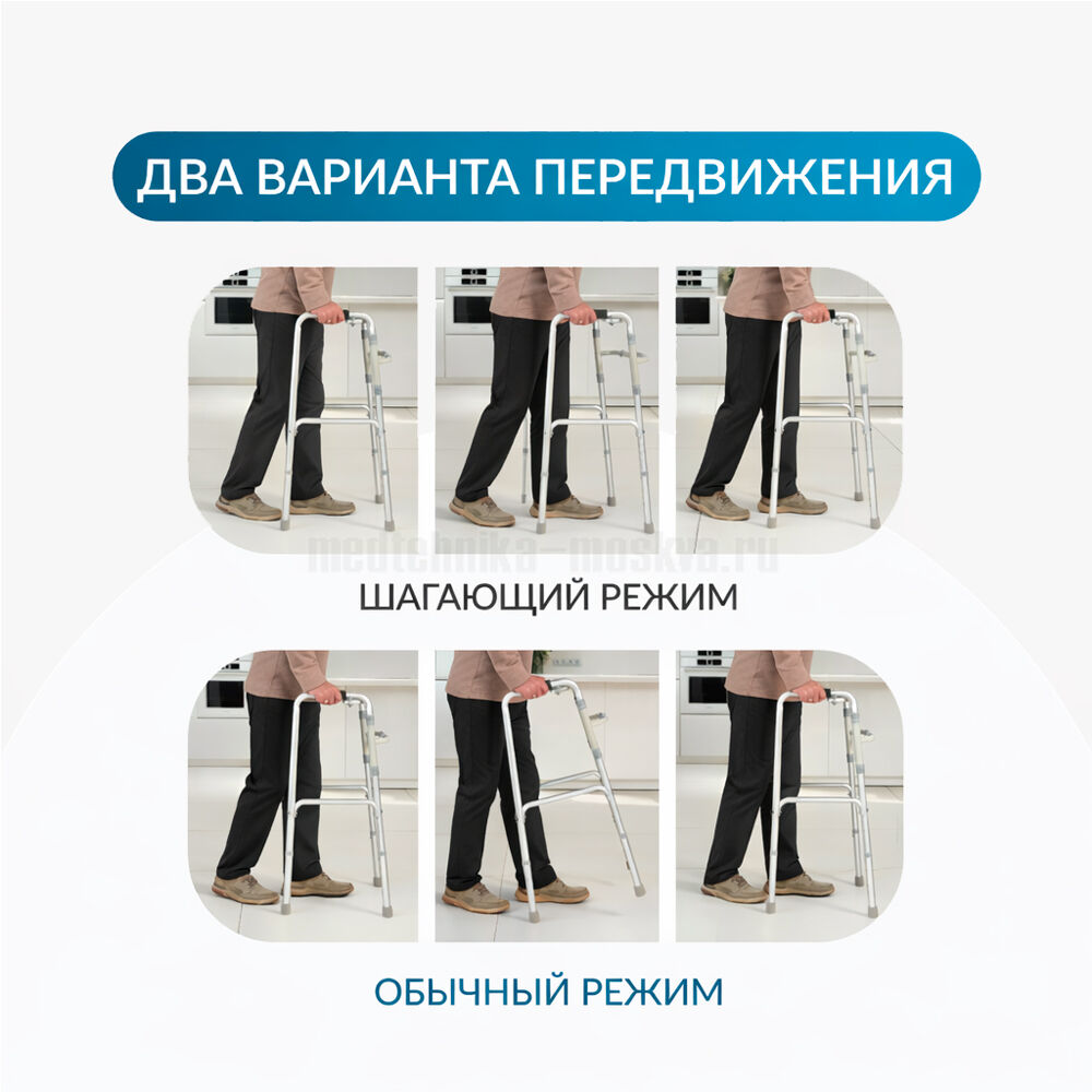 Приспособление поддерживает мобильность пожилых людей, пациентов с заболеваниями опорно-двигательного аппарата, неврологическими проблемами. Шагающая модель позволяет имитировать естественный процесс ходьбы, переставляя стороны поочередно. Качество изделия подтверждено удостоверением Росздравнадзора. Усовершенствованная версия ходунков KR913L, более легкая и полностью разборная.