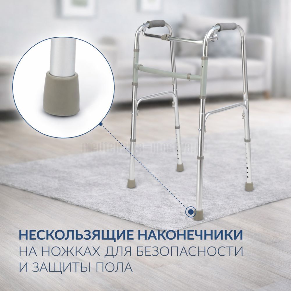 - Противоскользящие насадки на ножках обеспечивают надежное сцепление с любой поверхностью, добавляют уверенности при ходьбе;