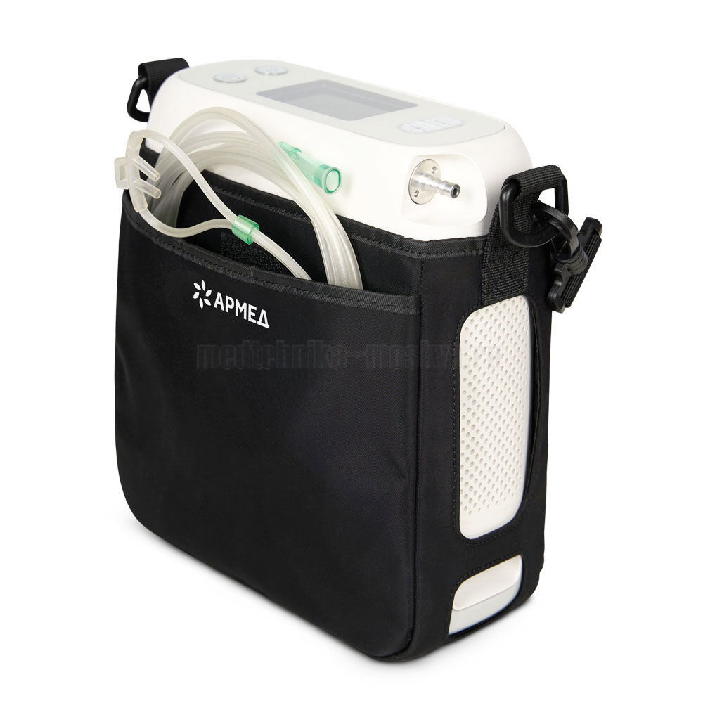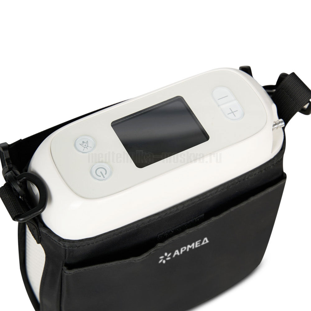 • Портативный кислородный концентратор Армед F2 адаптирует воздух из окружающей среды для создания концентрированной кислородной смеси. В основе механизма – цеолитовые колонки;