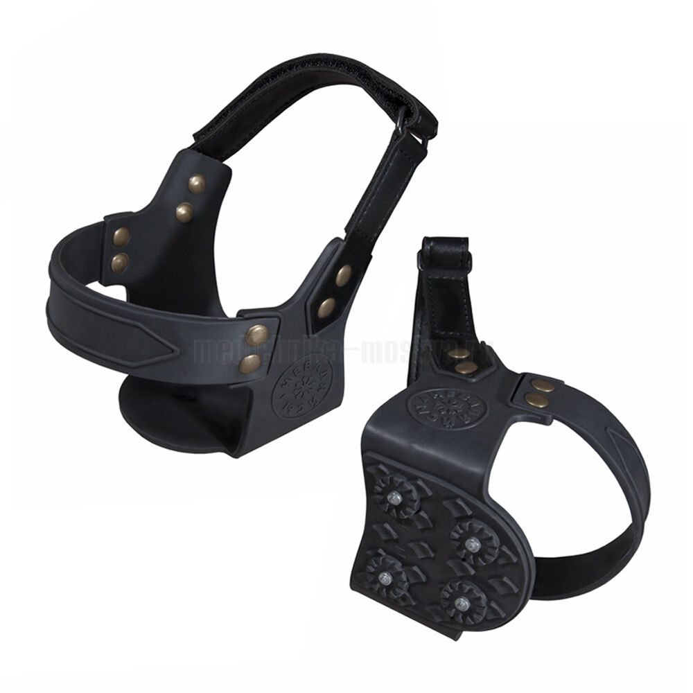 Изделия оснащены высокопрочными автомобильными шипами. Они обеспечивают безопасность при передвижении и повышенную устойчивость на льду. Надежно фиксируются на подошве и при этом легко снимаются.
