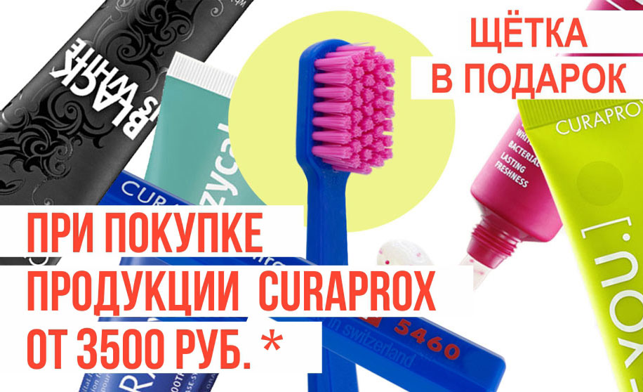 При покупке от 3500 рублей любой продукции Curaprox щетка в подарок